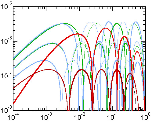 Figure 2. Error curves of approximations with maximum relative error < 10 ppm